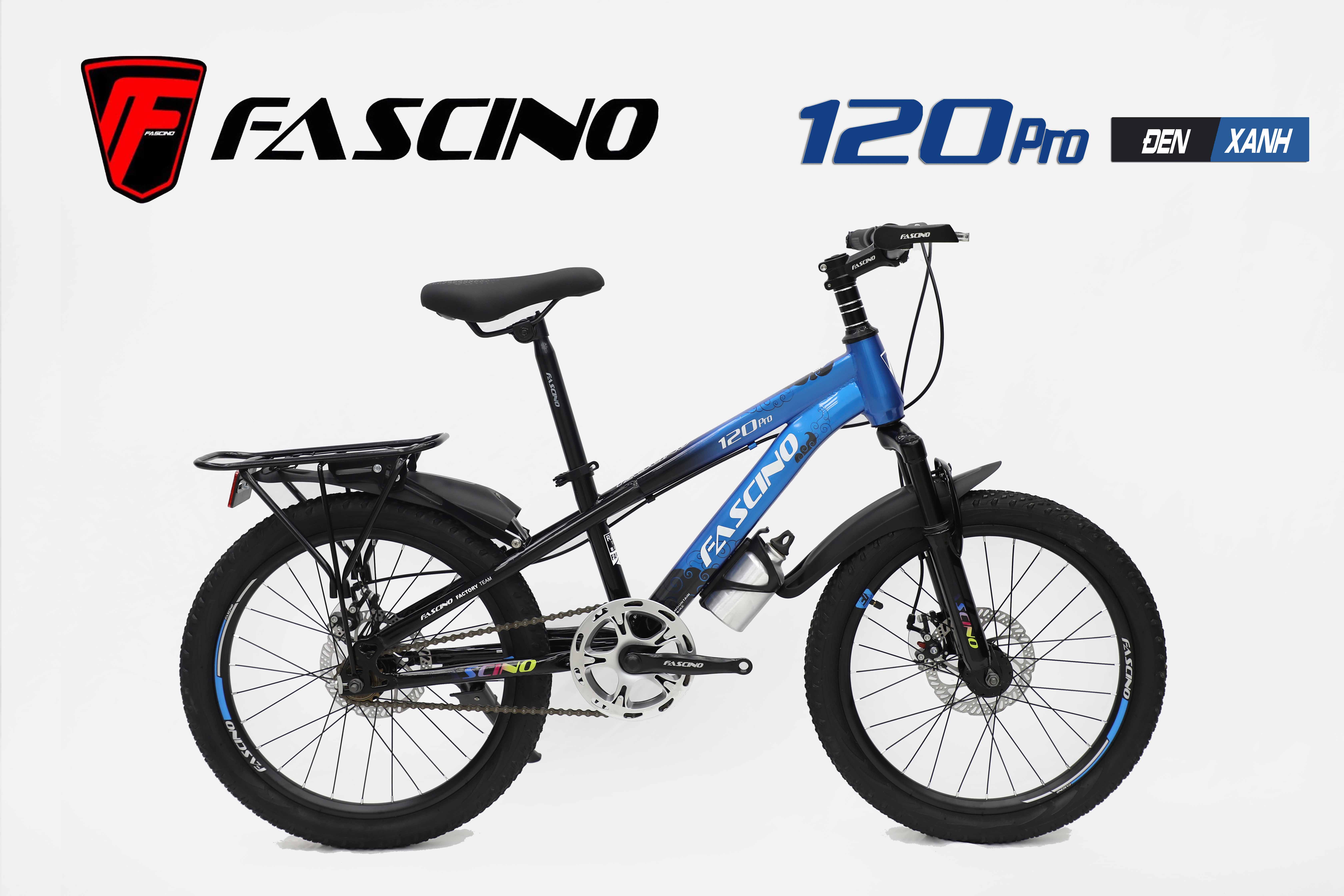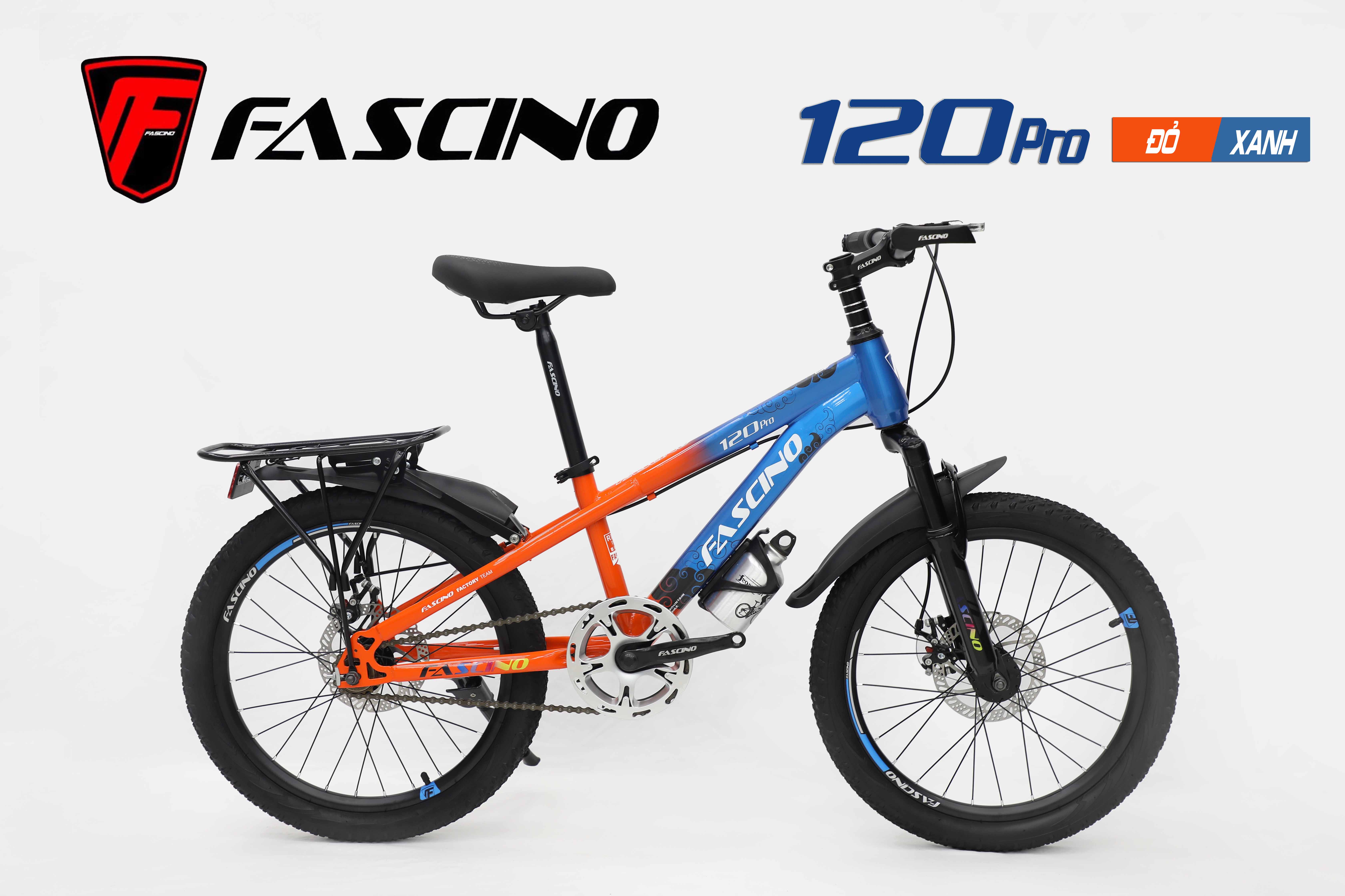 Xe đạp địa hình FASCINO 120 Pro là phiên bản nâng cấp với thiết kế mạnh mẽ, hiện đại và độ bền cao. Xe sở hữu khung thép cường lực chắc chắn, được phủ lớp sơn tĩnh điện bền màu giúp tăng khả năng chống trầy xước và giữ vẻ ngoài luôn mới sau thời gian dài sử dụng. Trang bị bánh xe 20 inch linh hoạt cùng hệ thống phanh đĩa an toàn, FASCINO 120 Pro mang lại cảm giác lái ổn định, dễ kiểm soát và phù hợp với nhu cầu di chuyển hằng ngày của học sinh.