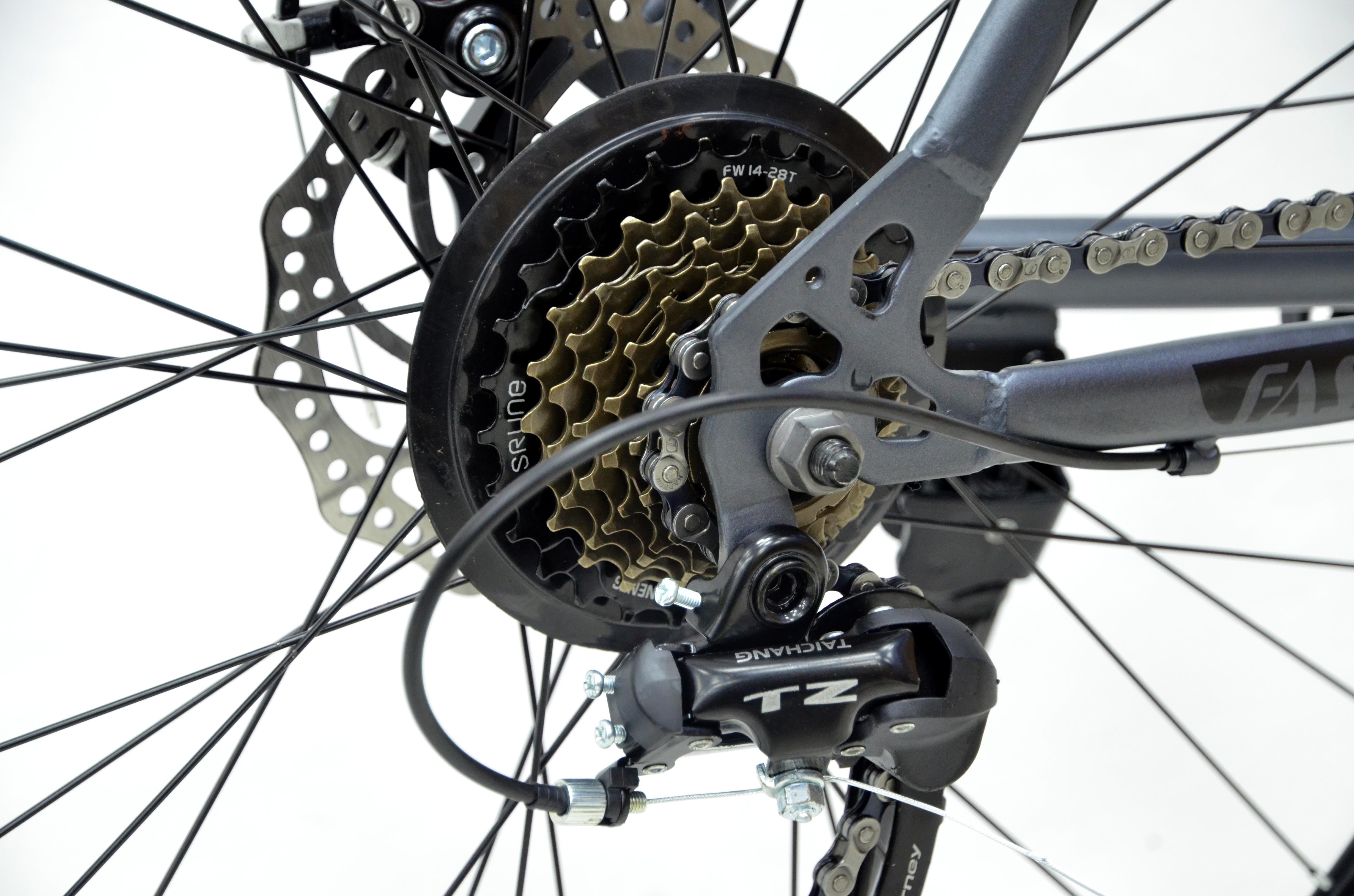 Khung xe thiết kế bằng hợp kim thép cường lực, phanh đĩa, trang bị bộ truyền động TAICHANG 21 tốc độ đảm bảo độ bền, hoạt động ổn định với mọi địa hình, mọi tốc độ.