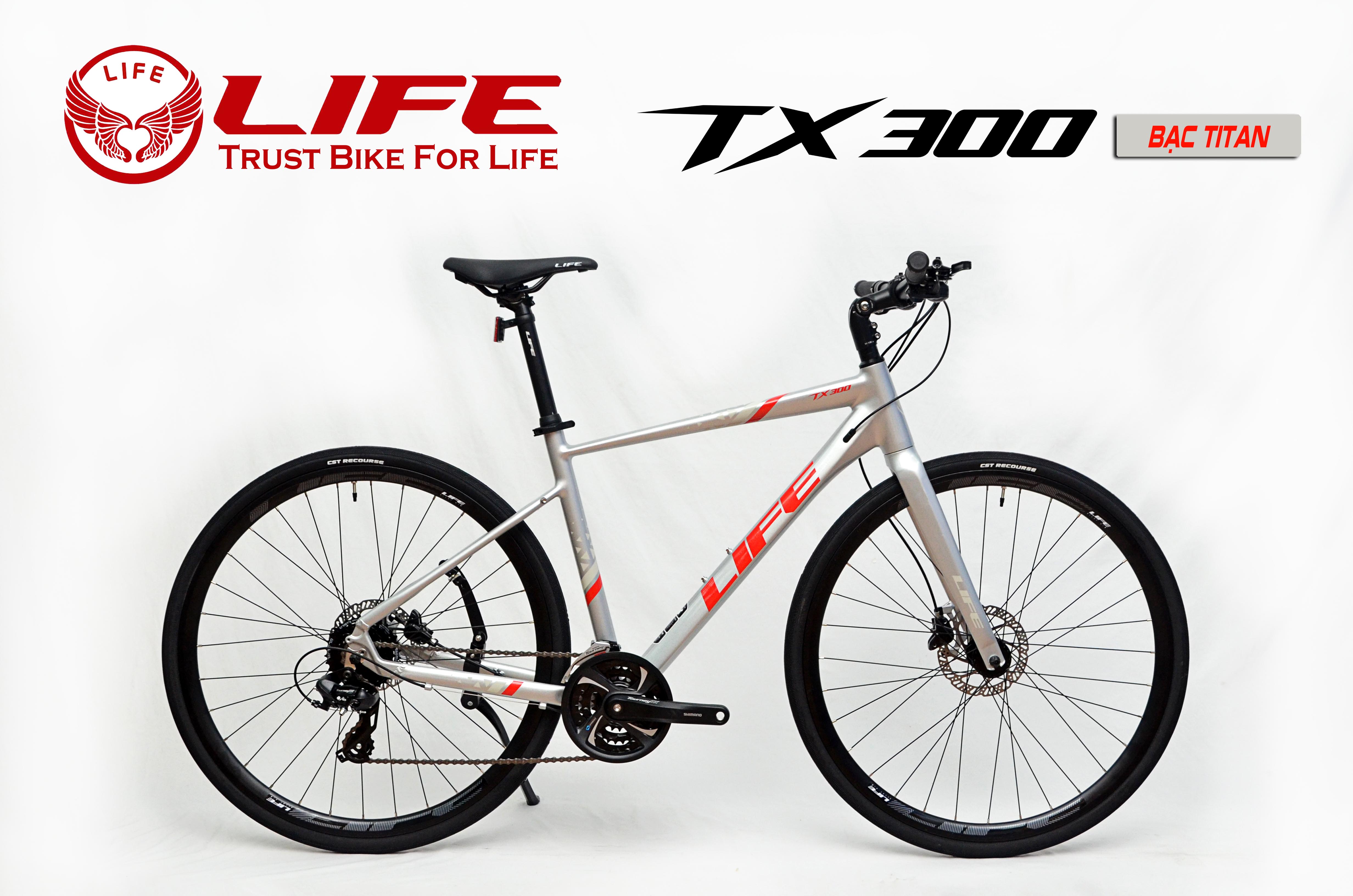 Xe đạp touring LIFE TX300 được hãng xe đạp LIFE đưa tới cho người sử dụng sản phẩm những trải nghiệm tuyệt vời nhất, có những chuyến đi hoàn hảo nhất. Xe Touring LIFE TX300 với sự đột phá mới cho thị trường, đây là mẫu xe khung Nhôm không mối hàn siêu nhẹ - hình thức cự kỳ đẹp, cấu hình SHIMANO 24 tốc độ cùng trang bị phanh đĩa dầu SHIMANO, líp thả... Tổng thể tạo lên chiếc xe đạp thể thao hoàn hảo từ kiểu dáng thiết kế đến chất lượng. Là lựa chọn số 1 cho mẫu xe touring tầm giá dưới 10 triệu bởi sự ưu đãi đặc biệt của LIFE dành cho người dùng để sở hữu một chiếc xe khá cao cấp với một mức giá rất tốt.